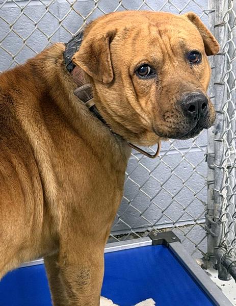 🍔 Used to being isolated and alone. Needs to be shown the love and compassion of a human. Jarek, Pit Bull Terrier & Shar-Pei Mix, Adult (3-8 years), Male, Large, Vaccinated.